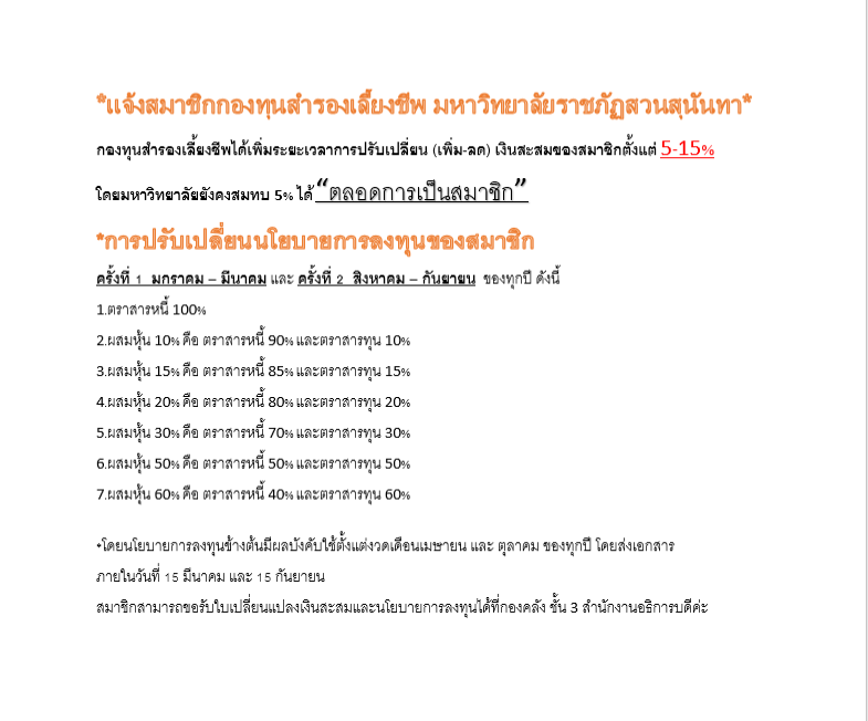 แจ้งข่าวสมาชิกกองทุนสำรองเลี้ยงชีพ