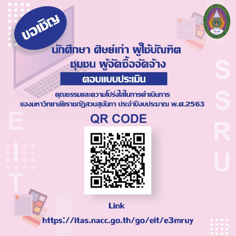 ขอเชิญนักศึกษา ศิษย์เก่า ผู้ใช้บัณฑิต ชุมชน ผู้จัดซื้อจัดจ้าง ตอบแบบประเมินคุณธรรมและ